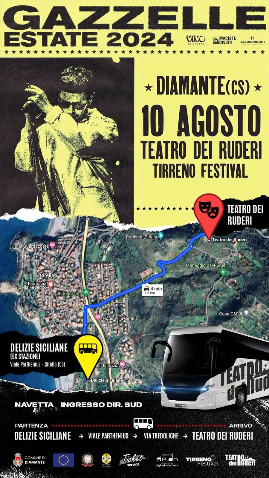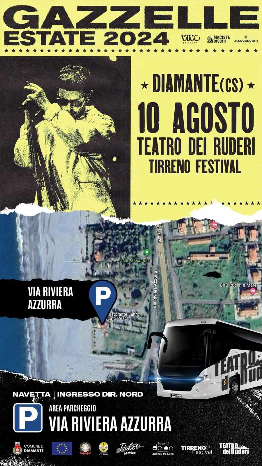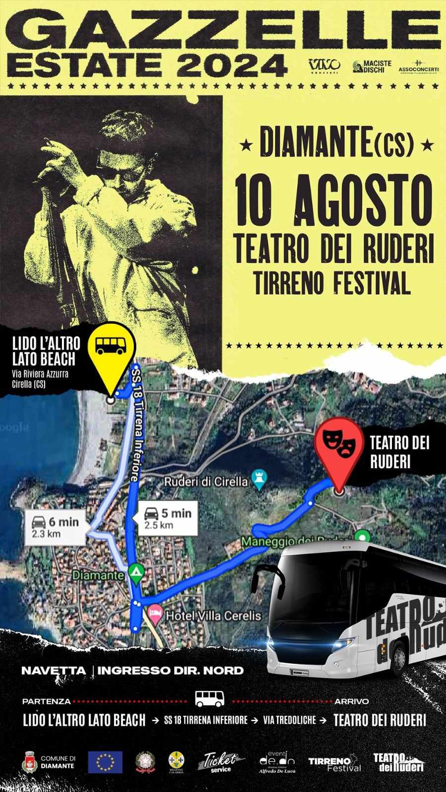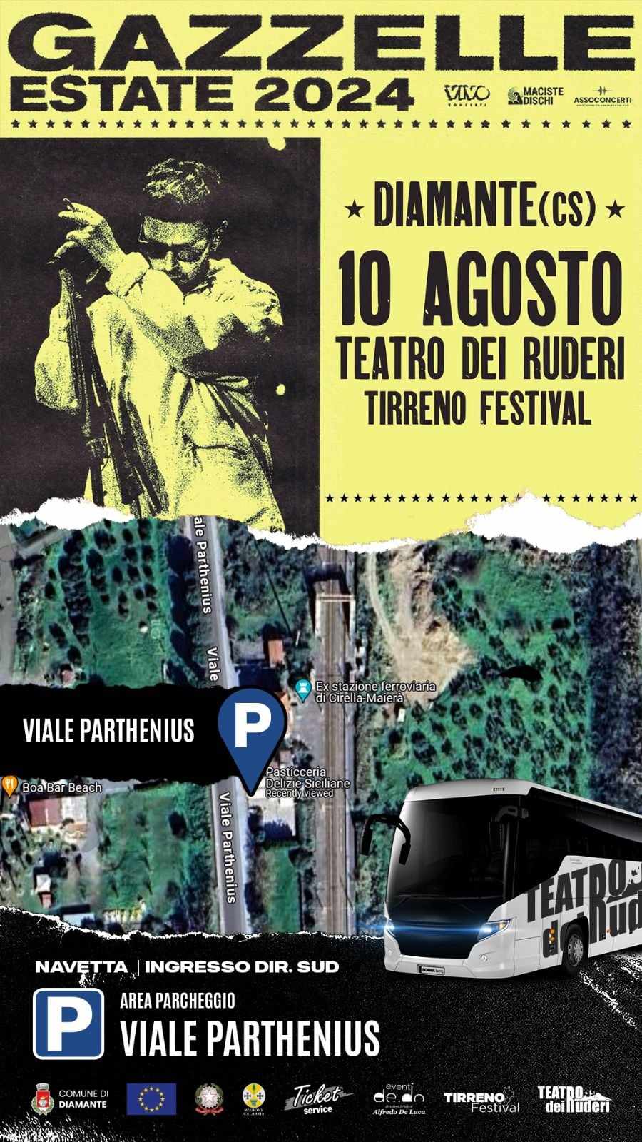 Ecco tutte le info, chiusura strade e servizio navetta sul concerto di Gazzelle di stasera al Teatro dei Ruderi di Cirella – Diamante (CS)