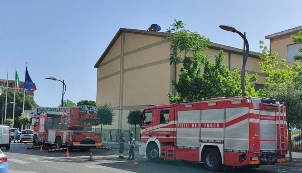 “Due operai del bacino di lavori impiegati negli anni per la cura del verde pubblico, questa mattina di buonora si sono saliti sul tetto della scuola media Roncalli a Corigliano Rossano, per inscenare la singolare forma di protesta. «Dopo tante promesse non mantenute siamo stati costretti ad arrampicarci»”