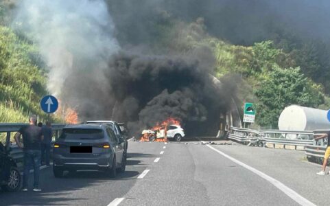 “A causa di un veicolo in fiamme sull’A2 “Autostrada del Mediterraneo”, è stato temporaneamente chiuso il tratto in direzione nord, tra gli svincoli di San Mango d’Aquino e Altilia Grimaldi. Il veicolo ha preso fuoco dopo essere rimasto coinvolto in un incidente con un’altra vettura.”