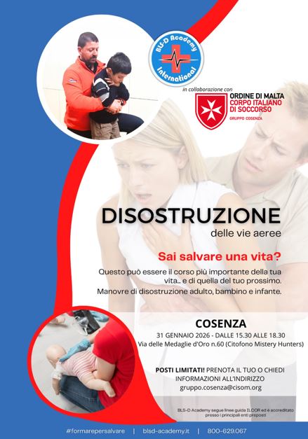 Oltre al valore formativo, il corso assume un importante significato solidale: il ricavato sarà devoluto al CISOM – Gruppo di Cosenza, a sostegno delle attività e dei servizi svolti sul territorio a favore della comunità.