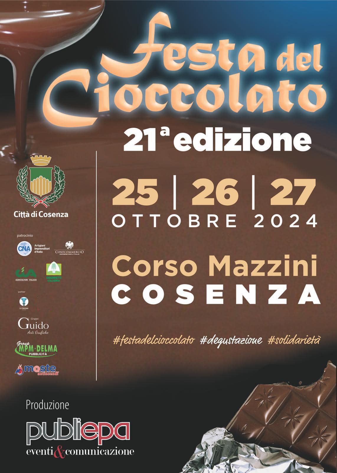 A Cosenza l’appuntamento con la dolcezza torna su Corso Mazzini dal 25 al 27 ottobre 2024 per la 21° edizione della Festa del Cioccolato.