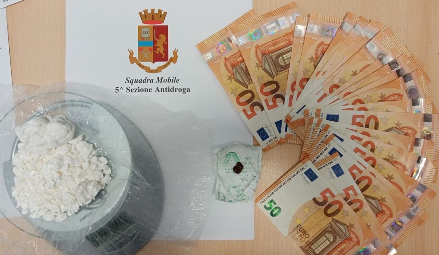 Il giovane deteneva in casa 50 grammi di cocaina. Oltre a più di mille euro in contanti, rinvenuta e sequestrata anche un’arma da fuoco