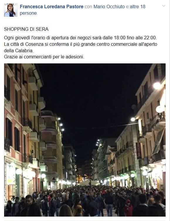 La città di Cosenza si conferma il più grande centro commerciale all’aperto della Calabria.