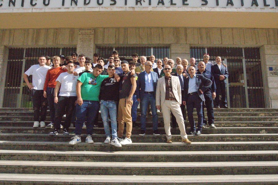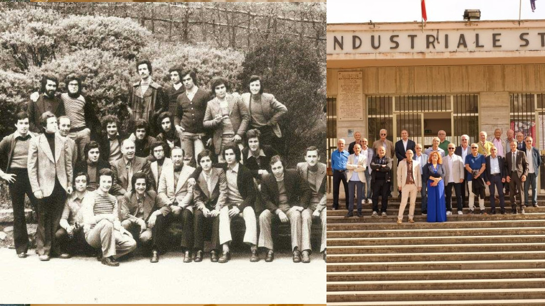 “Gli studenti della V°E Elettrotecnica dell’ITIS “A. Monaco” di Cosenza, dopo la rimpatriata del 25 marzo 2012 (37 anni dal Diploma a.s. 1973/1974), si sono ritrovati di nuovo, mercoledì 16 ottobre, dandosi appuntamento sulla scalinata dell’Istituto, per festeggiare il 50° Anniversario del Diploma di Perito industriale (1974/2024).
