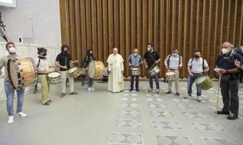 “I tummarinari di Donnici due giorni fa sono stati ricevuti da sua santità Papa Francesco nella sua consueta Udienza generale del mercoledì. In questa occasione hanno avuto l’onore di suonare per il Santo Padre”