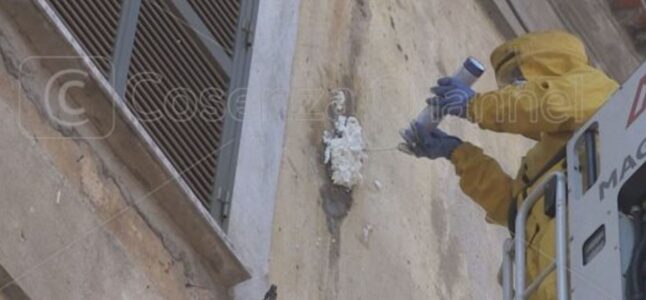 “Una squadra dei vigili del fuoco di Cosenza è intervenuta in Via Davide Andreotti, nel quartiere Rivocati nei pressi del Comune, per la rimozione di un nido di vespe ricavato nella intercapedine del muro esterno di un palazzo, all’altezza del terzo piano e in prossimità di una finestra.”