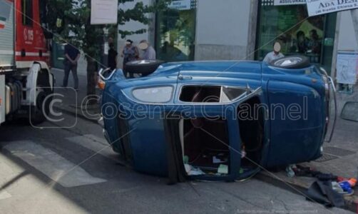“Incidente stradale a Cosenza, in corso Umberto, questa mattina dove un’auto, una Cinquecento d’epoca, si è ribaltata per cause in corso d’accertamento. Si registrano, per fortuna, feriti lievi.”