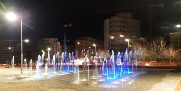“Fanno un certo effetto, da qualche giorno, le sei file di getti potentissimi – con tanto di giochi di luce in funzione anche di giorno ma molto suggestivi solo col buio, naturalmente – che continuano ad attirare attenzioni (e ironia, ma anche qualche stranito selfie e sognanti storie notturne su instagram) nel tratto più a sud di viale Mancini.”