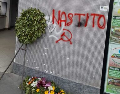 “Alcuni ignoti a fianco alla corona che era stata sul luogo depositata giorno 10 Febbraio in occasione del Giorno del Ricordo, in omaggio alle vittime delle foibe e agli esuli istriani, fiumani e dalmati, hanno imbrattato il muro con una scritta in vernice rossa inneggiante al maresciallo Tito, comandante delle armate slave nel secondo conflitto mondiale, responsabili degli infoibamenti di italiani lungo il confine orientale.