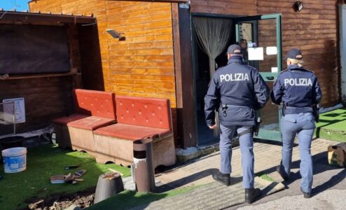 “Nella mattinata odierna la polizia ha svolto una serie di posti di controllo e perquisizioni domiciliari e personali, circondando via degli Stadi. Durante il servizio è stato rinvenuto un fabbricato completamente abusivo adibito a sala slot-machine con apparecchiature clandestine e prive di licenza.”