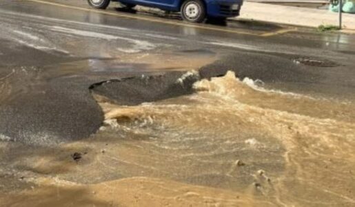 “L’improvvisa rottura di una condotta idrica, verificatasi nel tardo pomeriggio di ieri nella parte alta di via Cattaneo, ha determinato la fuoriuscita di notevoli quantitativi d’acqua per tutta la stessa via Cattaneo e fino all’incrocio con via Roma e via Frugiuele.”