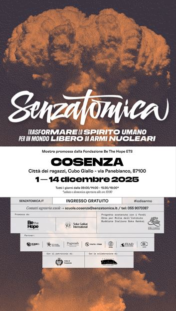 La mostra “Senzatomica. Trasformare lo spirito umano per un mondo libero da armi nucleari” arriva a Cosenza presso la Città dei Ragazzi – dal 1 al 14 dicembre