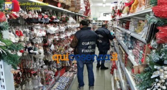 I Finanzieri di Cosenza hanno sottoposto a sequestro oltre 300.000 luminarie, giocattoli ed adesivi natalizi, destinati alla libera vendita potenzialmente pericolosi per i consumatori.”