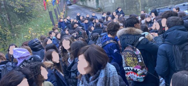 “Il dirigente scolastico De Luca e gli insegnanti hanno chiesto ai ragazzi di sostare all’esterno della segreteria.”