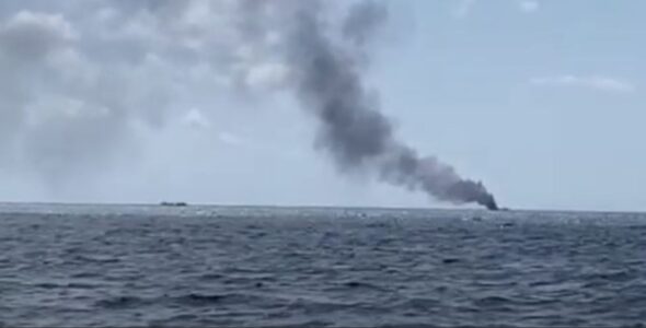 Le fiamme hanno avvolto l’imbarcazione durante le operazioni di trasbordo. Al momento si contano diverse persone ustionate e due uomini della guardia di finanza feriti nell’esplosione