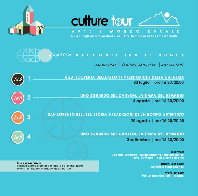 Culture Tour – Arte e Mondo Rurale è un progetto di promozione e produzione culturale, organizzato dal Comune di San Lorenzo Bellizzi in collaborazione con Piano B srls., che ne ha curato la realizzazione.