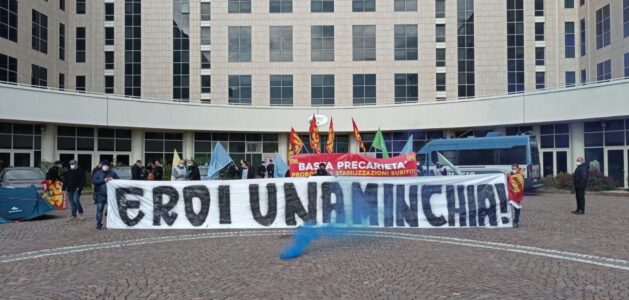 Alla Cittadella una delegazione di lavoratori con i sindacati Usb e Nursing Up. Sit-in contro la scadenza dei contratti