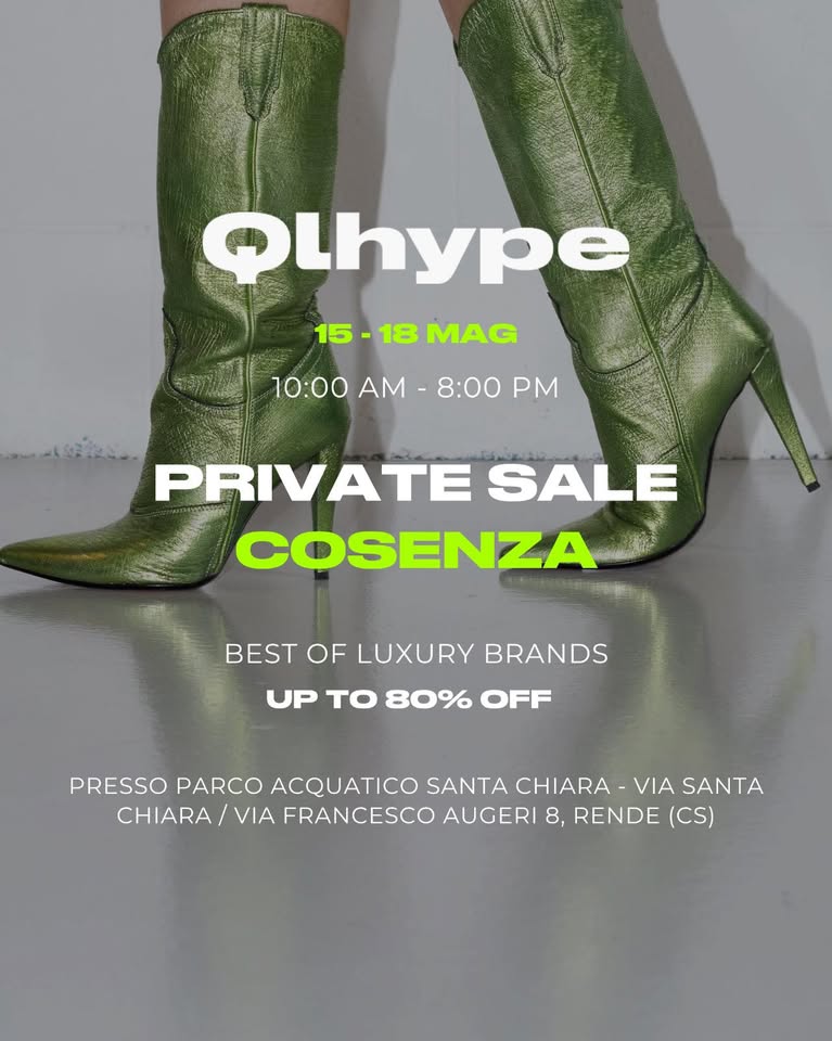 “Rende, 14 maggio 2025 – Qlhype è lieta di annunciare la sua prossima Private Sale, un evento esclusivo dedicato agli amanti del fashion di lusso, che si terrà da giovedì 15 a domenica 18 maggio, dalle ore 10:00 alle 20:00, nella suggestiva location del Parco Acquatico di Rende.