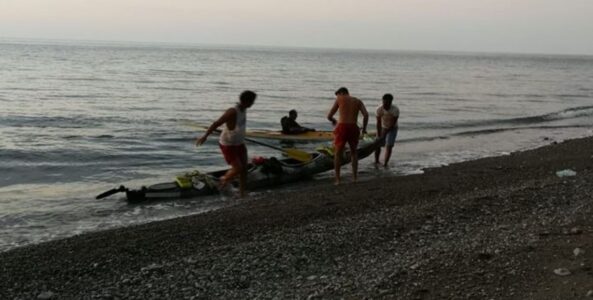 Dal 21 maggio scorso Giulio e Lorenzo Valli, 25 e 16 anni, stanno circumnavigando l’Italia a bordo della loro canoa. Questa sera sono approdati sulla spiaggia di Torre Pinta a Corigliano-Rossano