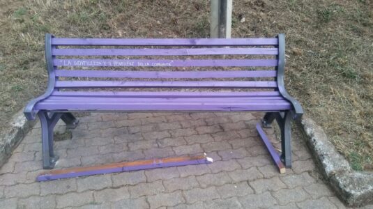 Danneggiata a Rende una panchina viola nell’ambito della Settimana della Gentilezza