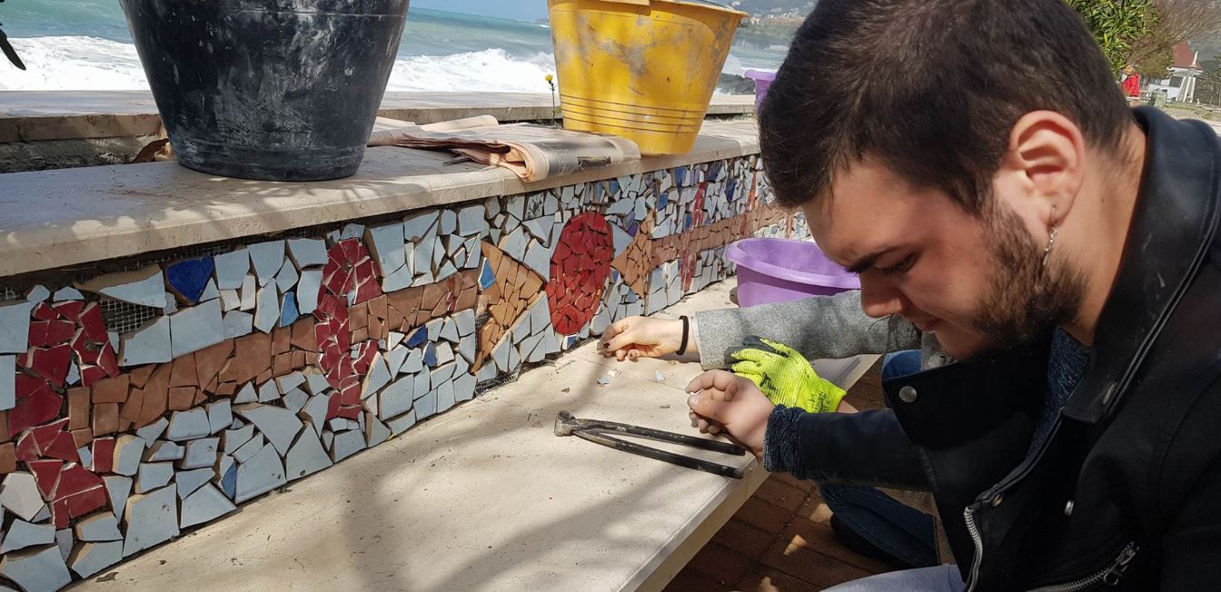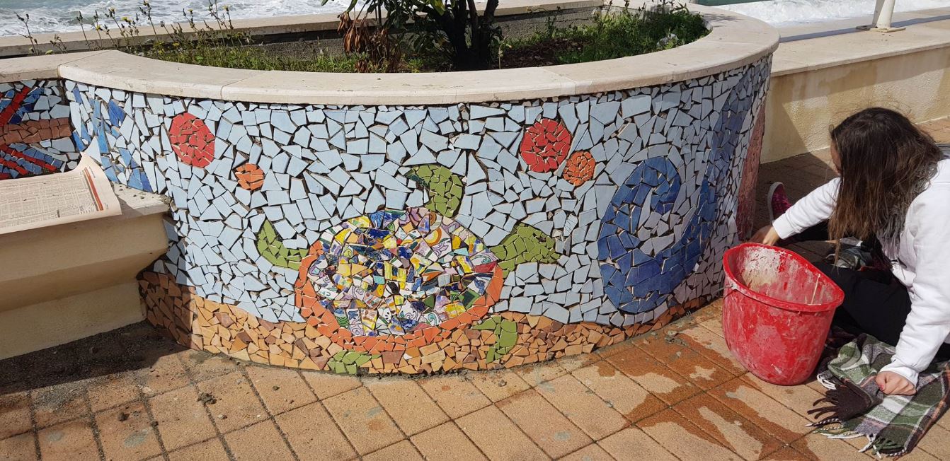 I ragazzi del Liceo artistico S. Lopiano di Cetraro stanno installando in questo momento dei mosaici sul lungomare di Cetraro.