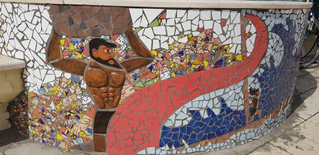 Il progetto prevede la realizzazione di 53 mosaici per tutto il lungomare. Si è partito da uno studio progettuale con tema ‘Odissea’ per selezionare vari disegni più idonei alla tematica.