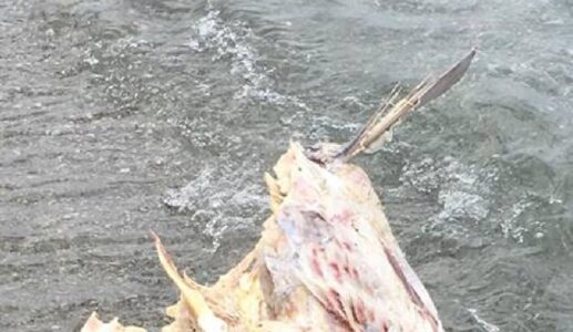 “Carcassa della testa di un tonno ora… spiaggiata a Torremezzo. Una signora ha chiamato circa un’ora fa la Guardia Costiera ma ancora non é arrivata”