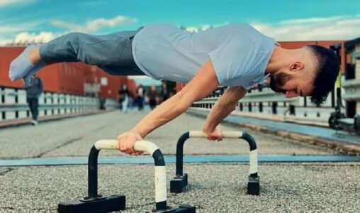 Il Calisthenics è l’arte di muovere il proprio corpo nello spazio, che può essere praticata ovunque, a casa, al parco, in palestra, basta avere un paio di parallele e una sbarra per allenare il nostro corpo a 360 gradi.