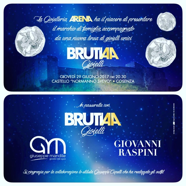 “La gioielleria Arena presenta un nuovo Marchio di Gioielleria!!!Nasce BRUTIAA…..ideata su prototipi unici e ispirati alla nostra bellissima Cosenza!!
