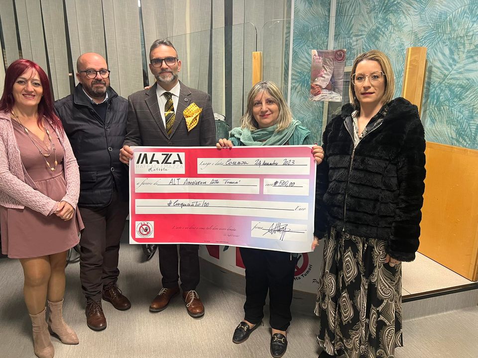 “La ALT -Associazione Lotta Tumori -Volontari Ospedalieri e Volontari Penitenziari di Cosenza ringrazia per il contributo il Preg.ssimo Dott. Raffaele Mazza, uno dei più grandi ed affermati artisti contemporanei calabresi, pluripremiato in campo nazionale ed internazionale.