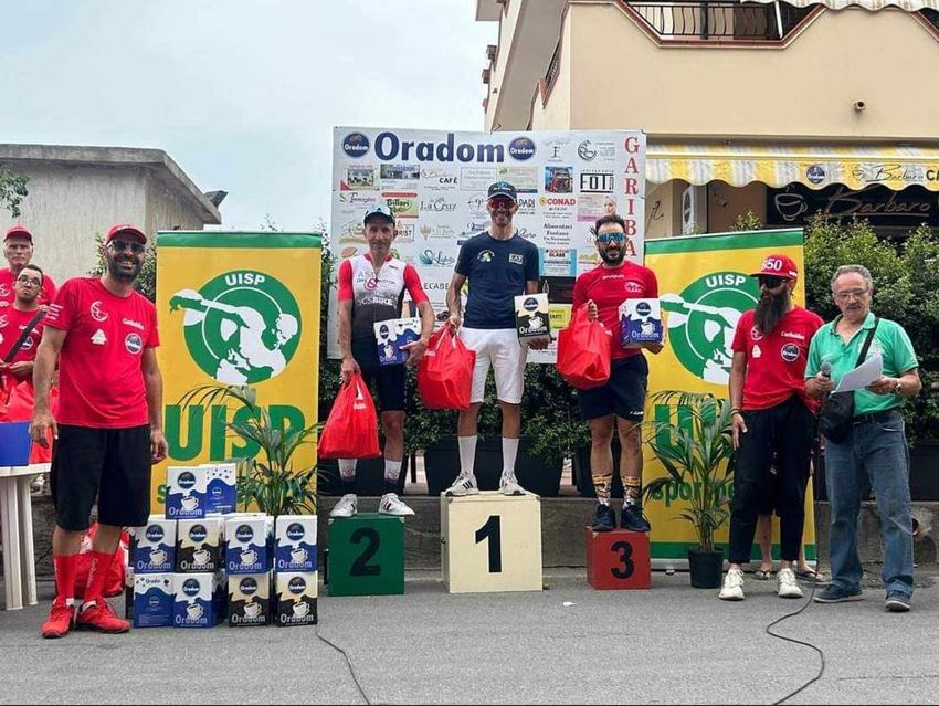 Nel gruppo a fare buona guardia il compagno di squadra Vincenzo Torchia. All’ultimo giro la stoccata vincente di Santino ci porta a tagliare il traguardo facendo il vuoto su tutti.