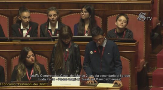 “Un lavoro dignitoso per tutti”: due classi dell’I.C. Casali del Manco 2 premiate a Palazzo Madama nell’ambito del concorso nazionale “Testimoni dei diritti” promosso dal Senato e dal Ministero dell’Istruzione