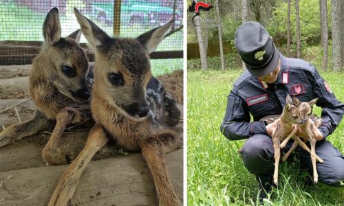 Due cuccioli di capriolo salvati dai carabinieri nel centro visite del Cupone in Sila