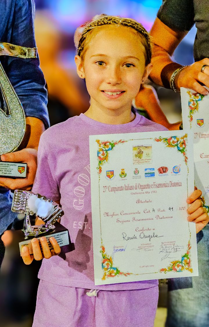 Il giovane talento rendese suona la fisarmonica da solo 1 anno e mezzo presso la Antonio Grosso School con il Maestro e compositore Antonio Grosso, e dallo scorso weekend è la vincitrice della sua categoria ai Campionati Italiani di Fisarmonica Diatonic.