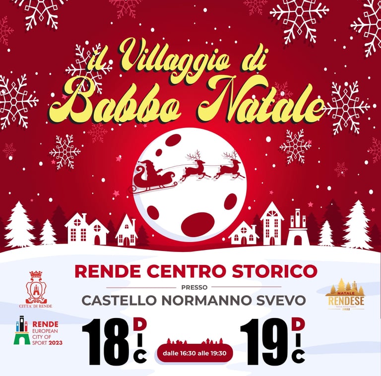Il 18 e il 19 Dicembre, dalle 16:30 alle 19:30 presso il castello normanno svevo di Rende centro storico sarà allestito il tanto atteso “Villaggio di Babbo Natale” con scenografie natalizie, animazione e lettere per bambini a cura del progetto “leggi e sogna” di Marisa De Rose, mercatini di Natale in chiave street food, music show e l’immancabile consegna delle lettere dei bambini a Babbo Natale.