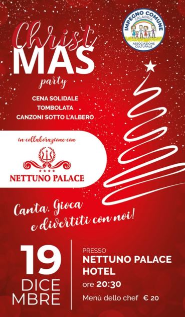 La cena solidale promossa dall’associazione Impegno Comune Calabria si terrà giovedì 19 Dicembre, dalle ore 20:30 presso il Nettuno Palace Hotel di Belvedere Marittimo