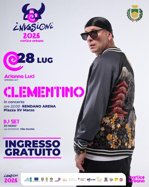 Energia pura, ritmo e freestyle travolgente: questa sera, alle ore 22.00, sul palco di Invasioni 2025 arriva Clementino, uno dei rapper più amati e versatili del panorama musicale italiano, showman capace di raggiungere ogni tipo di pubblico