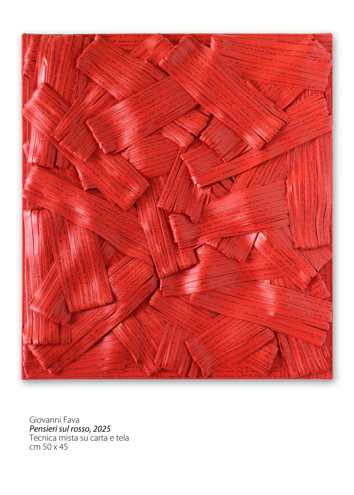 Con questa mostra, Fava propone un ciclo di opere nate da una fase di profonda maturità artistica e concettuale. “Fragili sospensioni” è un’esplorazione intensa e poetica del silenzio inteso non come vuoto, ma come condizione estrema della mente e dell’animo, dove l’accumulo di pensieri produce una forma di assenza apparente. Nelle parole dell’artista, “Il silenzio non è mancanza di pensieri, ma il risultato della loro saturazione”.