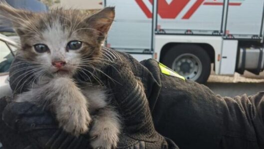 “I vigili del fuoco del Comando di Cosenza, distaccamento di Rende, sono intervenuti in via Kennedy nel comune di Rende. Il gattino impaurito ma in buono stato di salute è stato affidato ad un cittadino che volontariamente si è offerto di adottarlo.”