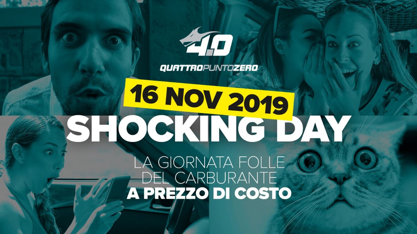 Ci siamo!!! Domani è lo SHOCKING DAY di Quattropuntozero: la giornata folle del carburante a prezzo di costo.