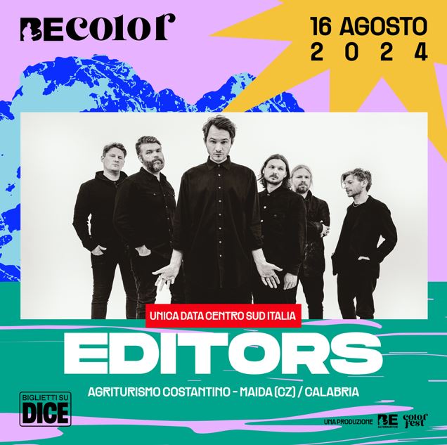 Annunciato il primo nome dell’edizione 2024 dell’evento che mette in sinergia due grandi festival del Sud, Be Alternative Festival e Color Fest: il 16 agosto a Maida (CZ) arrivano gli Editors!
