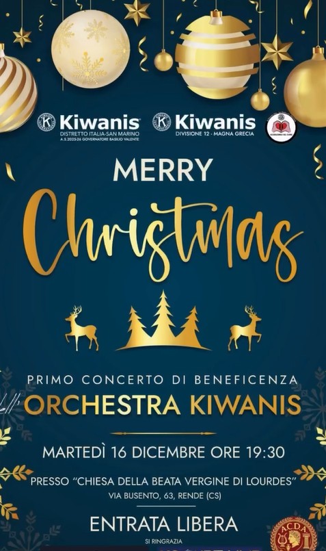RENDE – Una serata di musica, solidarietà e spirito di servizio ha illuminato il periodo natalizio lo scorso 16 dicembre 2025, quando nella suggestiva cornice della Chiesa della Beata Vergine di Lourdes, in via Busento 63 a Rende, si è svolto il Primo Concerto di Beneficenza dell’Orchestra Kiwanis.