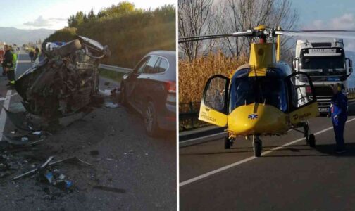 “Grave incidente sulla statale 106 jonica all’altezza di contrada Torricella a Corigliano Rossano. Quattro le auto coinvolte altrettanto il numero dei feriti, due dei quali di origine straniera trasportati con urgenza con l’elisoccorso all’Annunziata di Cosenza.”