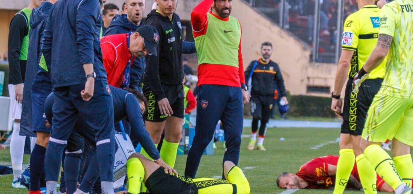 Guardalinee cade da solo durante Cosenza-Catanzaro, il referto: rottura di entrambi i tendini rotulei