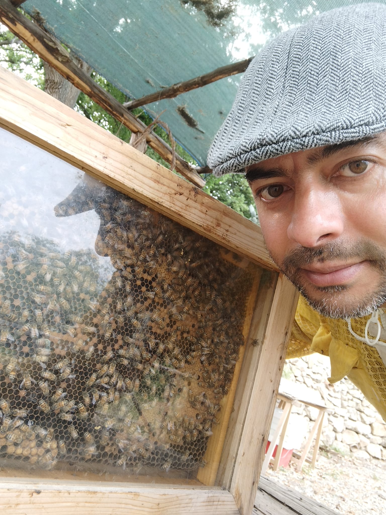 All’esterno di una carina casetta in legno sono state installate delle arnie e si potrà ammirare l’apicoltore che gestisce l’apiario.