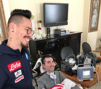 Così Simone, paziente affetto da SLA ospite del Centro Clinico San Vitaliano di Catanzaro, a testa alta sogna e combatte da vero guerriero per la propria vita e, lasciatecelo dire, dopo l’incontro del 30 dicembre 2017 ha sicuramente irradiato della sua forza il già grande capitano del Napoli Marek Hamsik.
