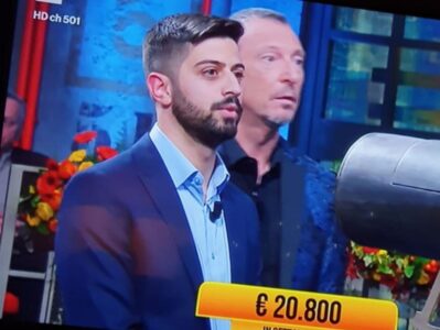 “Kevin 26 anni, appassionato di calcio con una laurea in Chimica, si è particolarmente distinto nell’indovinare le qualità delle persone invitate in trasmissione riuscendo a vincere la somma di 20.800 euro. Complimenti a Kevin”