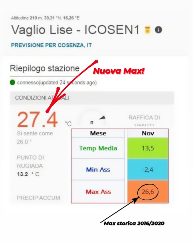 È una nuova massima assoluta del mese di Novembre da quando la stazione rileva i dati (quindi in questo caso dal 2016).
