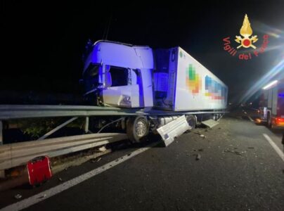 “A bordo del mezzo pesante c’era il solo conducente che, estratto dall’abitacolo dai vigili del fuoco, è stato affidato al personale sanitario del 118 per le cure del caso e successivo trasporto in ospedale.”