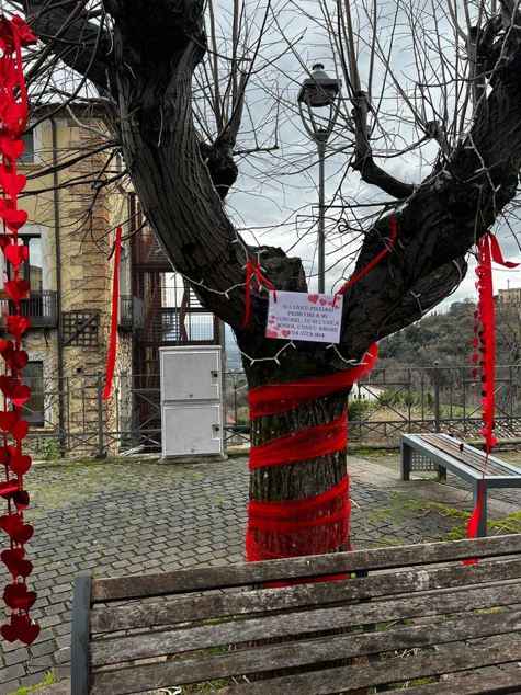 Piazza San Francesco, per febbraio, rimarrà addobbata a tema per consentire a quanti vorranno di scattare selfie sulla “panchina dell’amore”